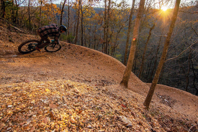 • Why ride: Fast, rocky descents, wooden features, and scenic Ozark views